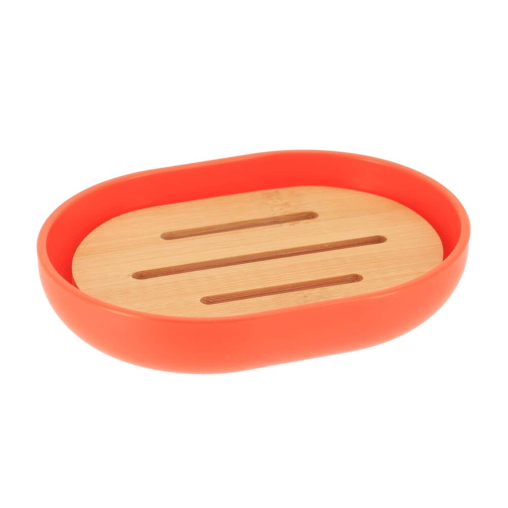 Upgrade your bathroom decor with the Orange Soap Bar Holder with Bamboo Drainer. Order now!